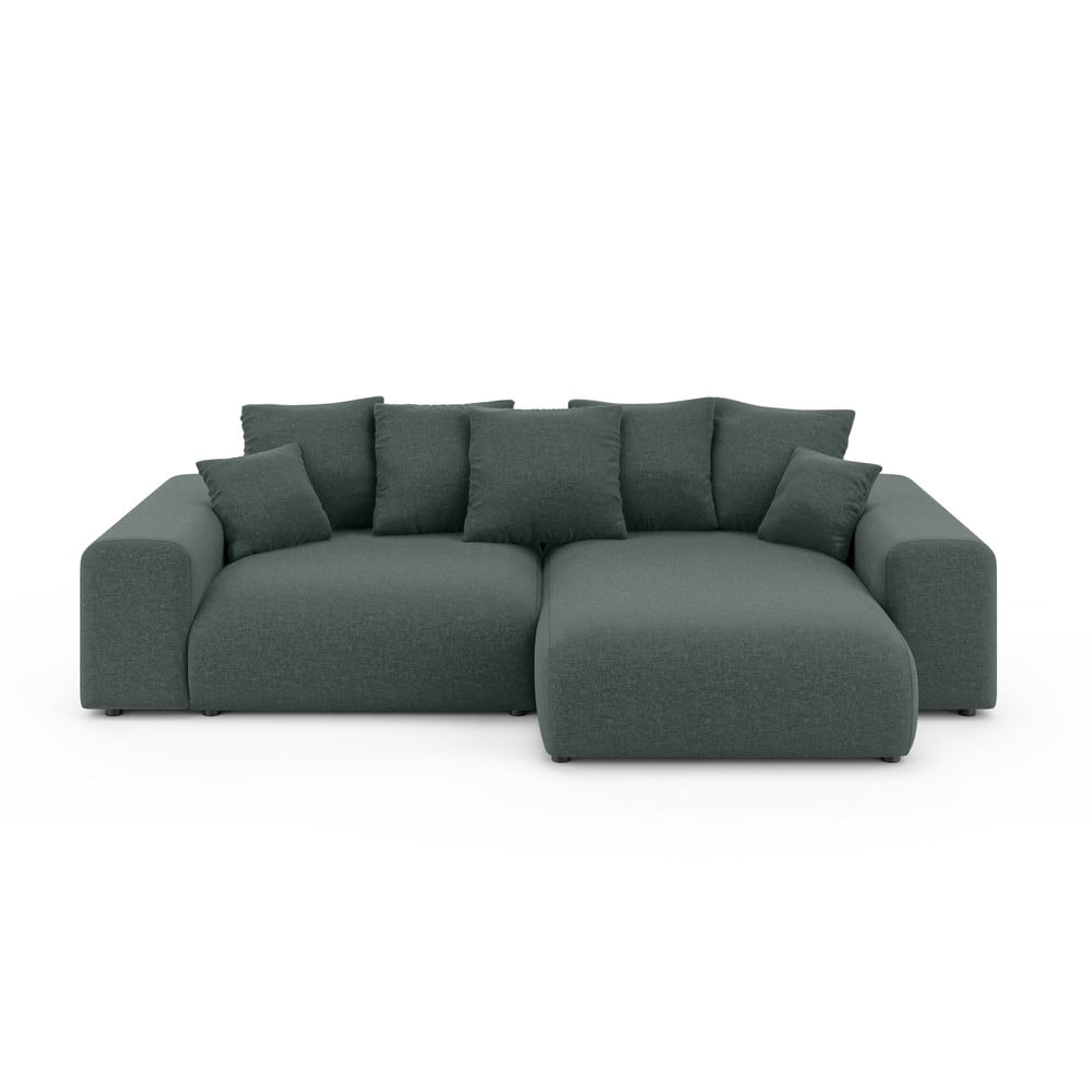 Popis produktu Tmavozelená rozkladacia rohová pohovka s úložným priestorom (variabilný roh) Luma – Ropez